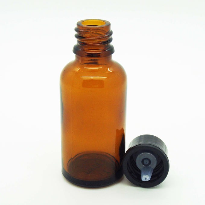 50ml Amber Glass Bottle, narrow neck (GL18), including black cap and internal dropper.Accessories: White lids to fit this bottle can be bought separately, see 'Inserts & Caps'. Alternatively, for a modern look have a look at our aluminium closures.