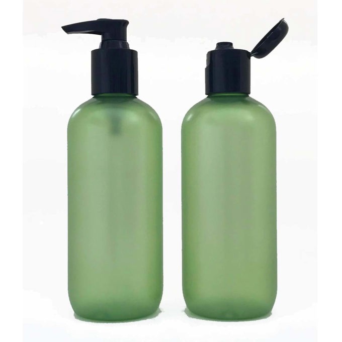 300ml Green Frosted PETE Bottle with Black Pump or Black Flip Top Lid
